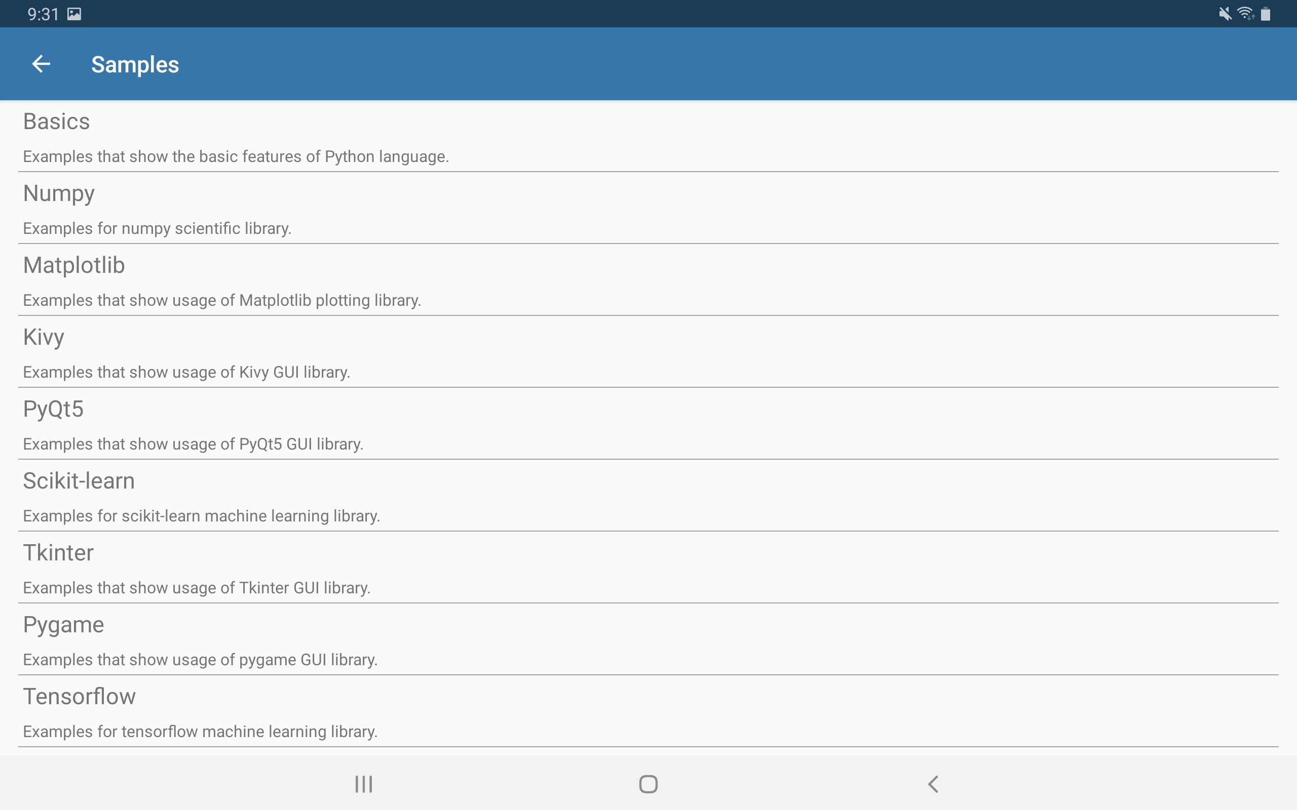 Pydroid3 앱에 있는 예제를 정리 해보고 있습니다.